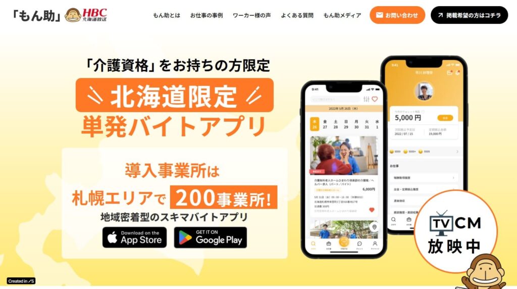 もん助は介護スキマバイトアプリです。2024年3月までは北海道で運営されていますが、今後は全国に広がっていく予定です。もん助は面接や履歴書がなくても応募できるので、面倒な手続きを省いてすぐに仕事ができます。