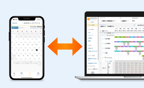 カイテクシフトは2.4万事業所、113万人にご利用いただいている、スポットワーク「カイテク」から生まれた、介護施設・医療機関向けシフト管理サービスです。