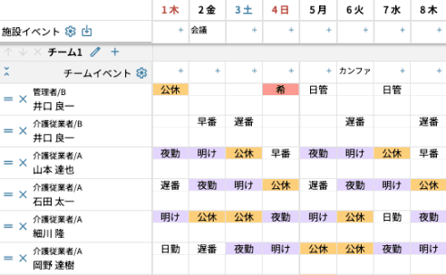 Excelを操作したことがある方なら、すぐに操作に慣れることができます。セルを選んで勤務を割り当てるだけのシンプルな操作で、導入したその日から使い始められます。